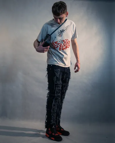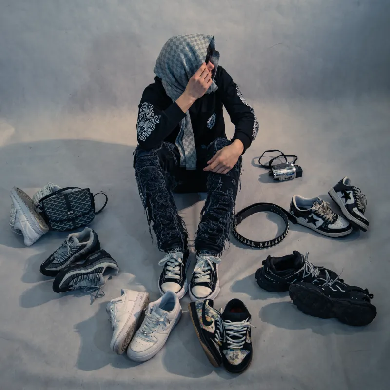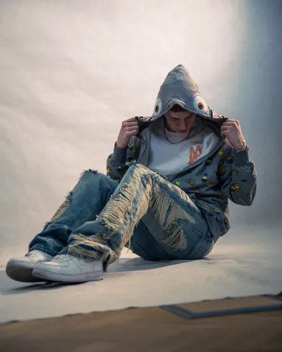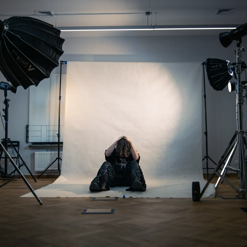 Studio photo session with a model. Various lighting setups and poses.